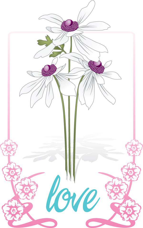 EPS格式,含JPG预览图,花朵,花边,LOVE,小红花,叶子,投影,矢量素材...