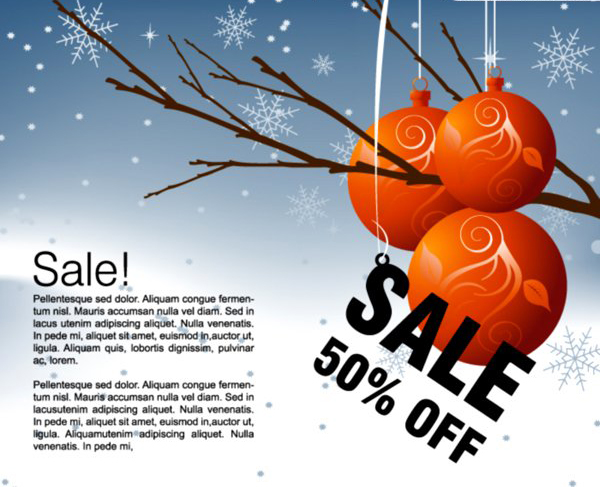 EPS格式,含JPG预览图,矢量海报,打折销售,打折,广告,冬季,雪花,圣诞球,矢量素材