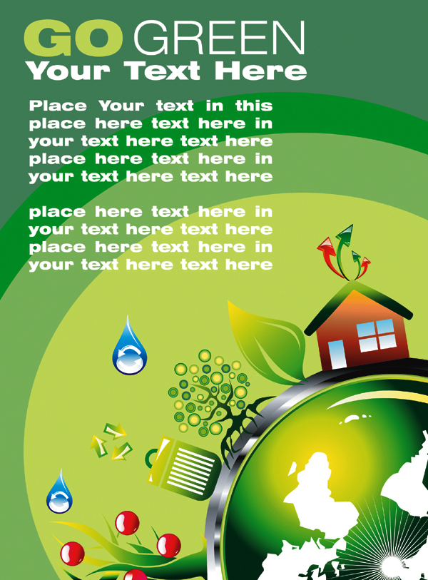 EPS格式,含JPG预览图,矢量卡片,卡片模板,卡片背景,绿色,清新,树木,水滴,房子,绿叶,地,矢量素材
