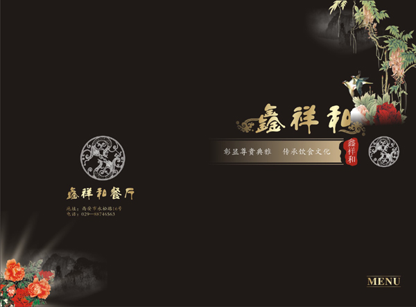 CDR格式,含JPG预览图,矢量广告,餐厅广告,古典风格,海报,标志,山水,牡丹花,中国风,矢量素材