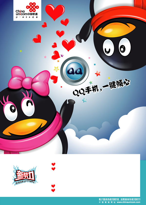 AI格式,含JPG预览图,矢量广告,QQ手机广告,中国联通,海报,可爱,QQ头像,QQ形象,心形,矢量素材
