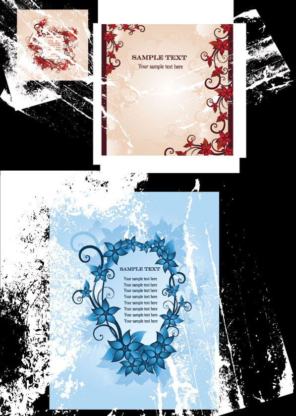 3款花纹和信纸矢量素材