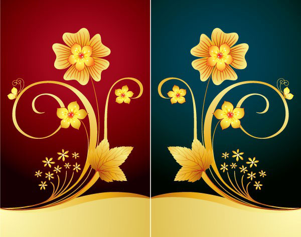 EPS格式,含JPG预览图,花纹,花卉,对称,鲜花,时尚花纹,对称花纹,金色,叶子,蝴蝶,矢量素材.