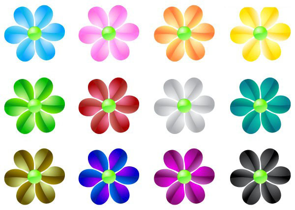 AI格式,含JPG预览图,矢量花卉,小花,水晶质感,web2.0风格,水晶小花,五颜六色,矢量素材.