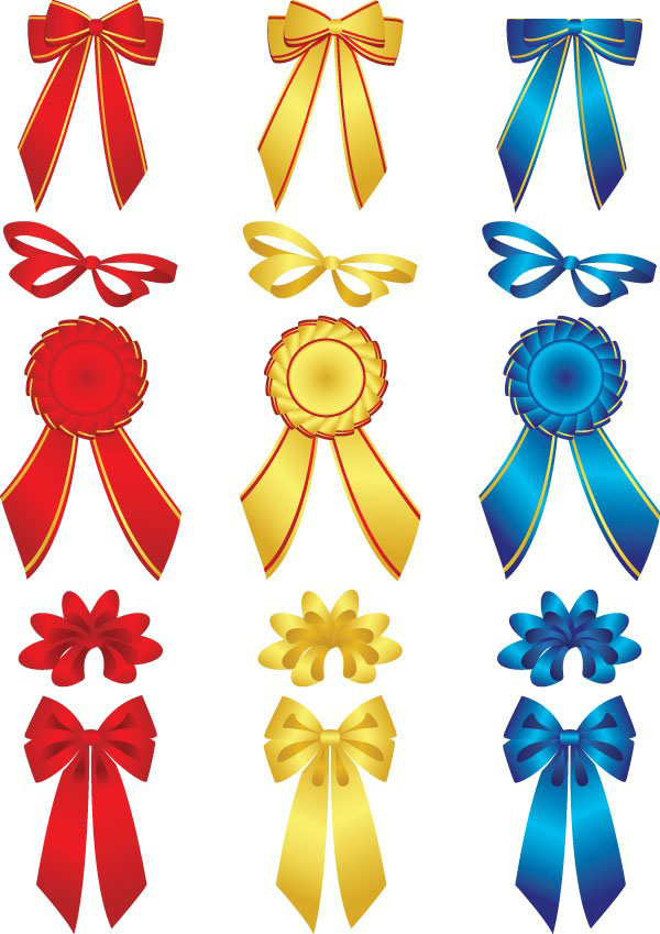 多款实用彩色蝴蝶结和胸章矢量素材