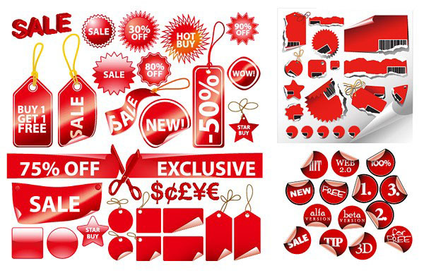 各种红色商场用装饰标签矢量素材