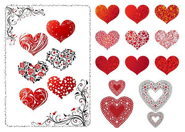 EPS格式,含JPG预览图,关键字:花纹,心形花纹,情人节,爱心桃,花边,玫瑰花,时尚条纹,边框,红色色调,矢量素材...