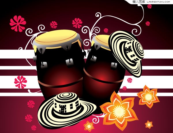 AI格式,含JPG预览图,关键字:矢量,鼓,墨西哥手鼓,墨西哥风情,帽子,花朵,矢量图