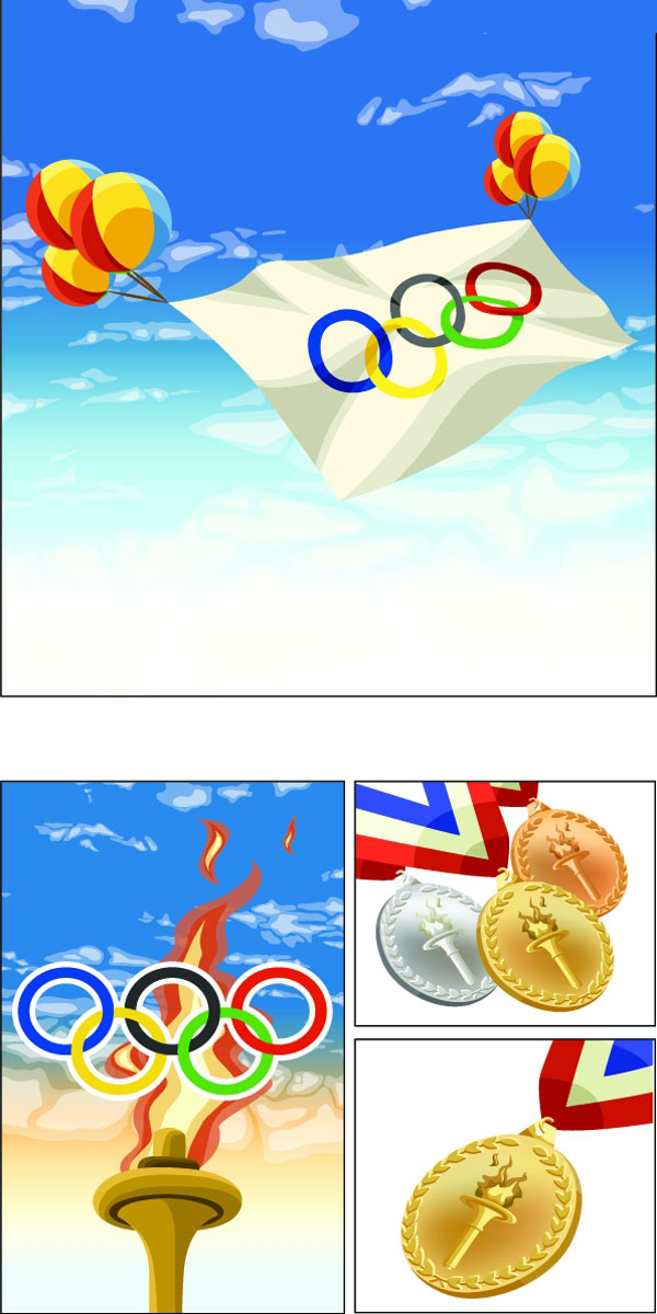 AI格式,含JPG预览图,关键字:矢量,奥运宣传海报,奥运旗帜,五环,蓝天,气球,火炬,奥运标志,矢量图