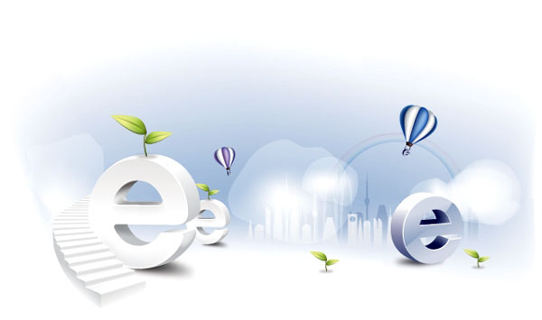 AI格式,含JPG预览图,关键字:矢量,e时代,网络时代,科技,字母e,城市建筑剪影,楼梯,插画,绿苗,,矢量图