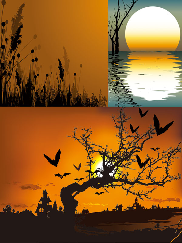 EPS格式,含JPG预览图,关键字:矢量剪影,枯树,树木,杂草,蝙蝠,风景,日落,落日,剪影,风光,风景,,矢量图...
