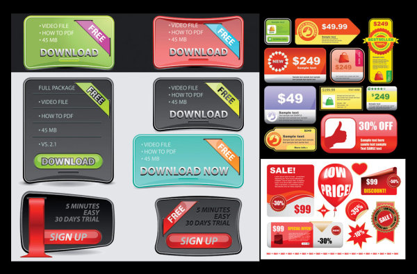 EPS格式,含JPG预览图,关键字:矢量标签,网页设计,装饰,心形,打折,包角,矢量图
