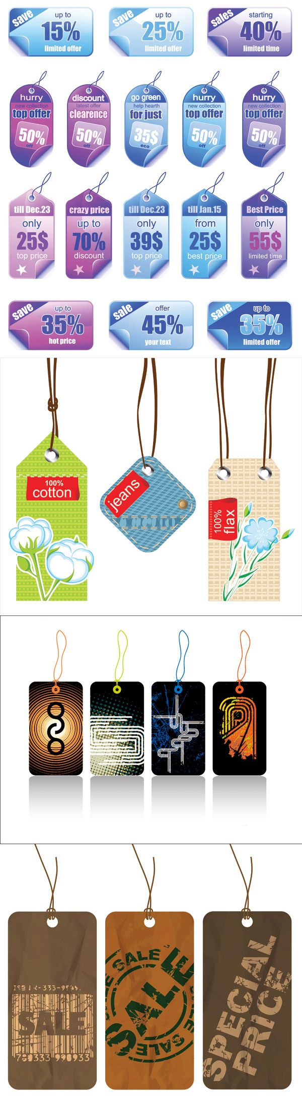 EPS格式,含JPG预览图,关键字:矢量吊牌,时尚,逼真,多款,销售,实用,矢量图