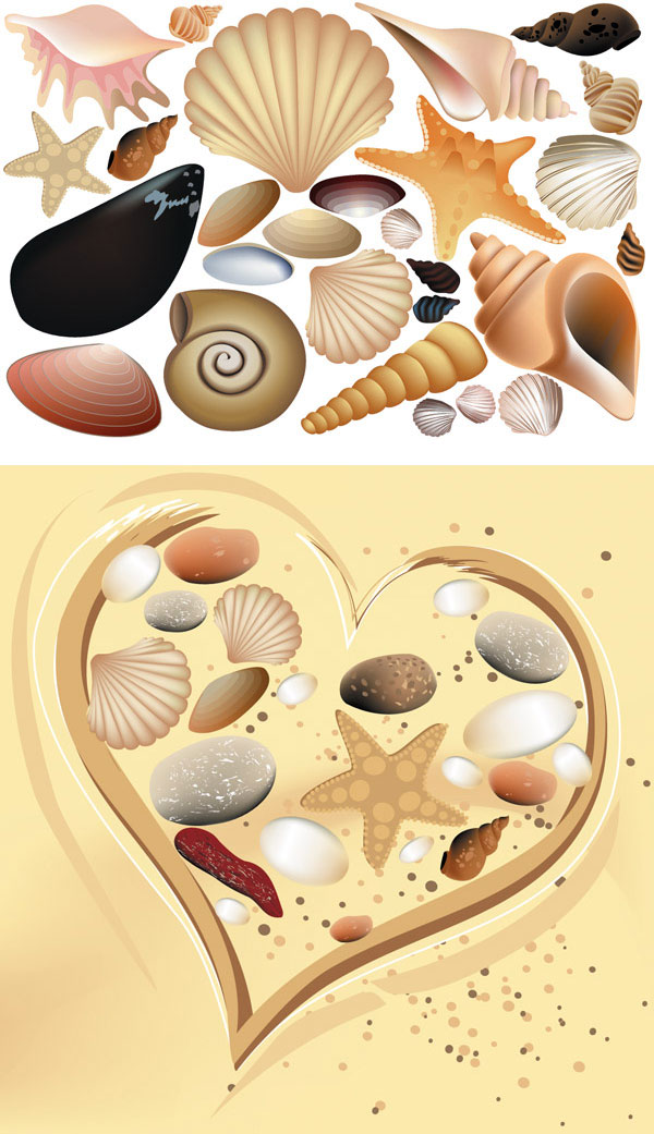 EPS格式,含JPG预览图,关键字:矢量贝壳,七彩,漂亮,海边,海螺,沙滩,海星,矢量图