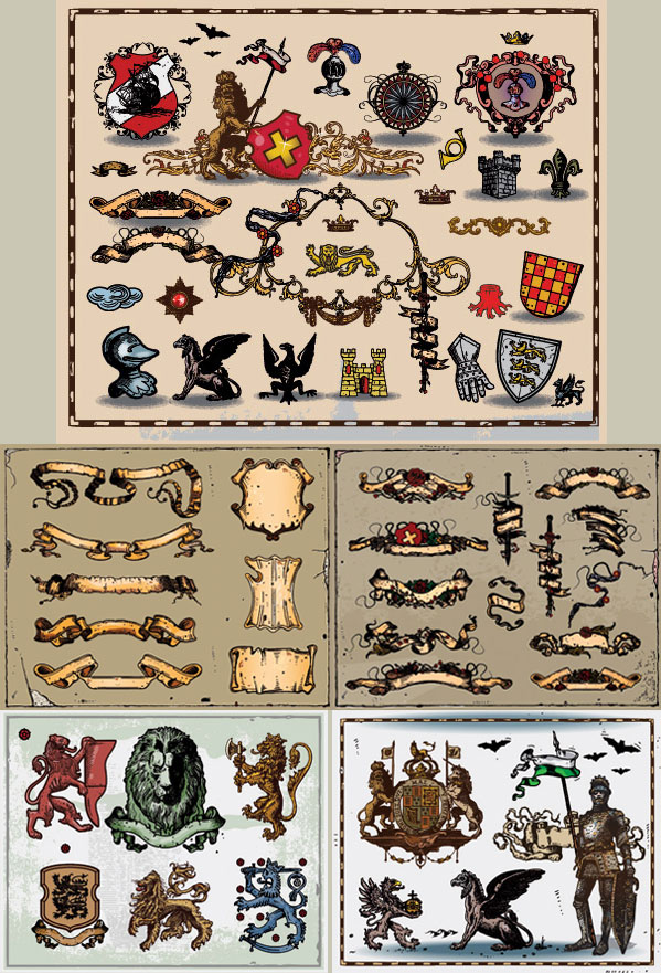 EPS格式,含JPG预览图,关键字:矢量纹章,古代,雄狮,武士,盾牌,矢量图