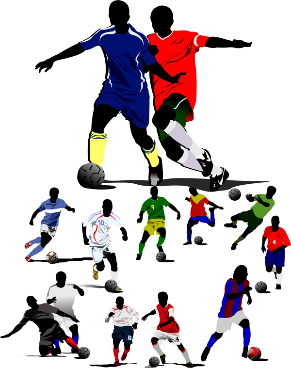 EPS格式,含JPG预览图,关键字:矢量运动,体育运动,足球,运动员,人物,剪影,带球,过人,射门,扑球,矢量图