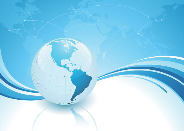 EPS格式,含JPG预览图,关键字:背景矢量素材,蓝色,动感线条,波浪线条,星星,地球,地图,矢量图