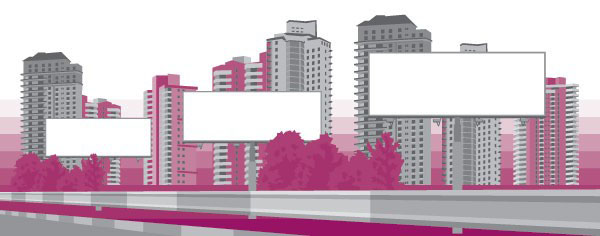 EPS格式,含JPG预览图,关键字:矢量风景,矢量建筑,城市建筑,高楼大厦,空白广告牌,紫色背景,矢量图