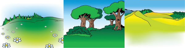 AI格式,含JPG预览图,关键字:矢量风景,卡通,野外,郊外,草地,山坡,树木,野花,矢量图
