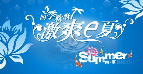 CDR格式,含JPG预览图,关键字:矢量字体,背景,广告素材,清凉,四季欢歌,激爽e夏,summer,鱼,荷花,矢量图