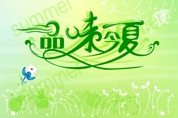 AI格式,含JPG预览图,关键字:矢量夏天,艺术字,吊旗,summer,清新背景,绿色,品味今夏,矢量图