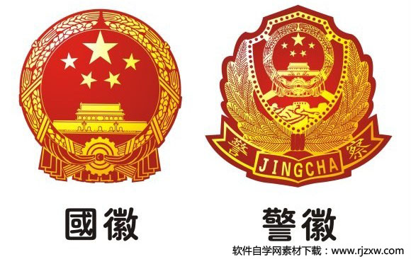 CDR格式,含JPG预览图,关键字:矢量标志,国徽,警徽,写实风格,精细绘制,字体,矢量素材