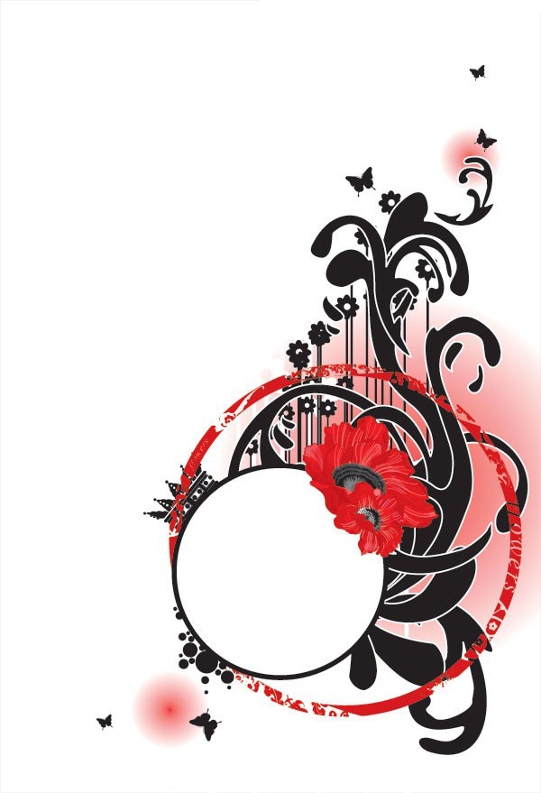 EPS格式,含JPG预览图,关键字:植物矢量素材,潮流元素,花纹矢量素材,蝴蝶,花朵,藤蔓植物,墨迹,圆环,矢量图