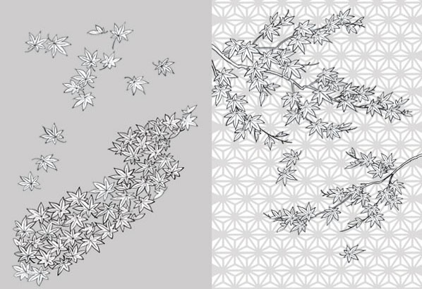 EPS格式,含JPG预览图,关键字:矢量植物,矢量树叶,枫叶,红叶,线描素材,网格背景,矢量图