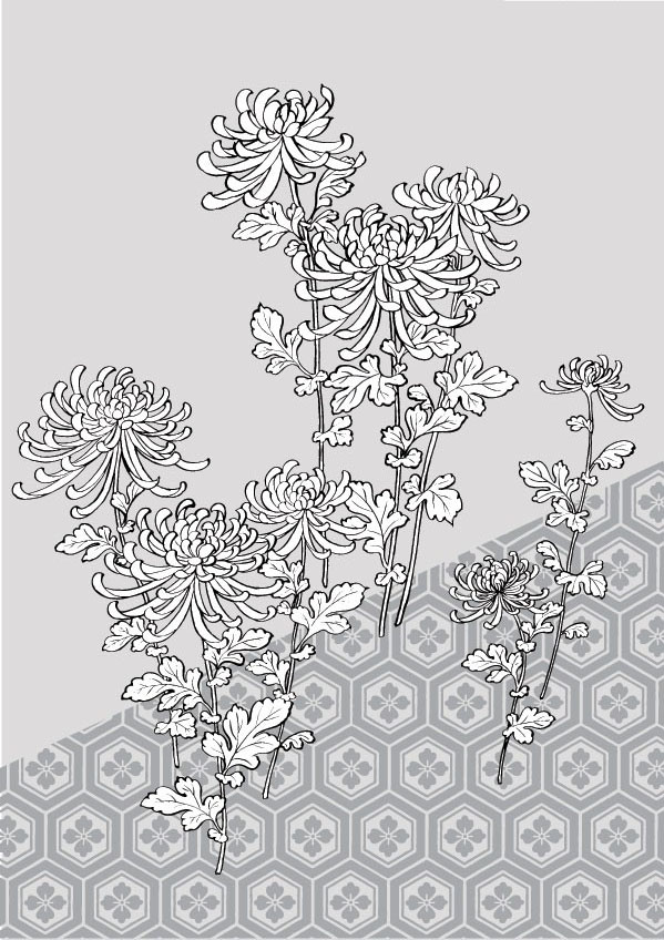 菊花线描矢量素材