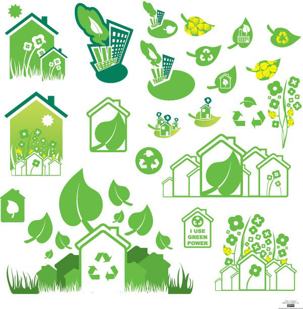 EPS格式,含JPG预览图,关键字:矢量,环保,环保标志,绿色,箭头,绿色植物,房子,绿叶,矢量图