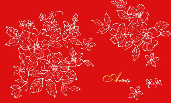 AI格式,含JPG预览图,关键字:矢量,花卉,牡丹花,线描,中国风,红色背景,矢量图