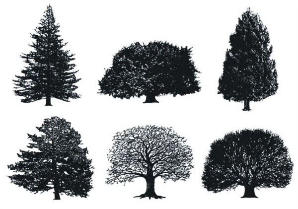 CDR格式,含JPG预览图,关键字:矢量植物,大树,树木,素描,黑白树木,松树,杨树,矢量图