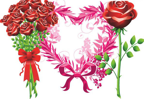 EPS格式,含JPG预览图,关键字:矢量植物,花卉,玫瑰花,红玫瑰,蝴蝶结,漂亮,情人节,爱情,鲜艳,矢量图