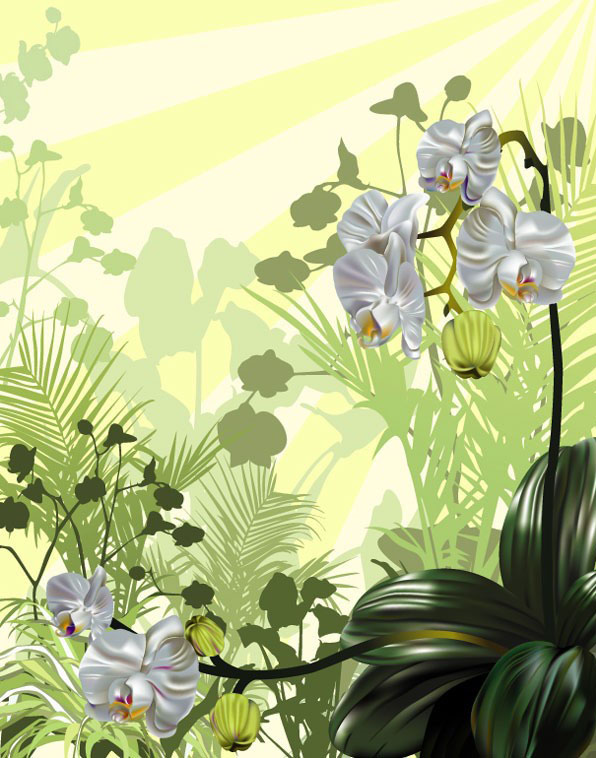 EPS格式,含JPG预览图,关键字:矢量兰花,花卉,花朵,植物,叶子,逼真,精致,矢量图