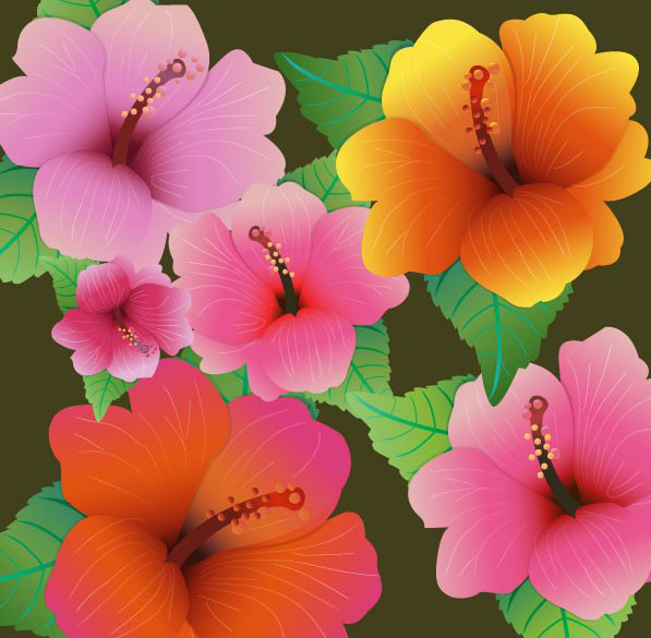 AI格式,含JPG预览图,关键字:矢量植物,花卉,背景,芙蓉花,漂亮,矢量图