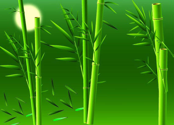 AI格式,含JPG预览图,关键字:矢量植物,竹子,写实风格,逼真,翠竹,圆月,月亮,矢量图