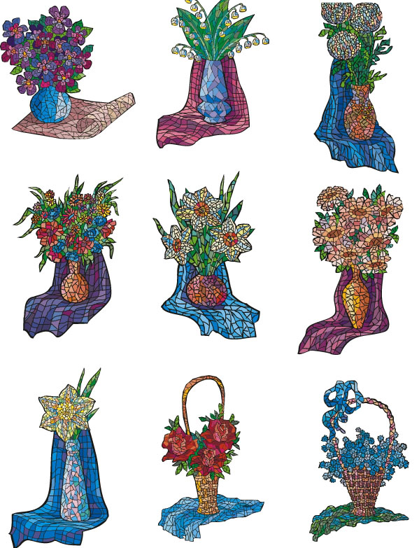 AI格式,含JPG预览图,关键字:矢量花卉,花瓶,花卉艺术,瓷瓶,花篮,个性,矢量图