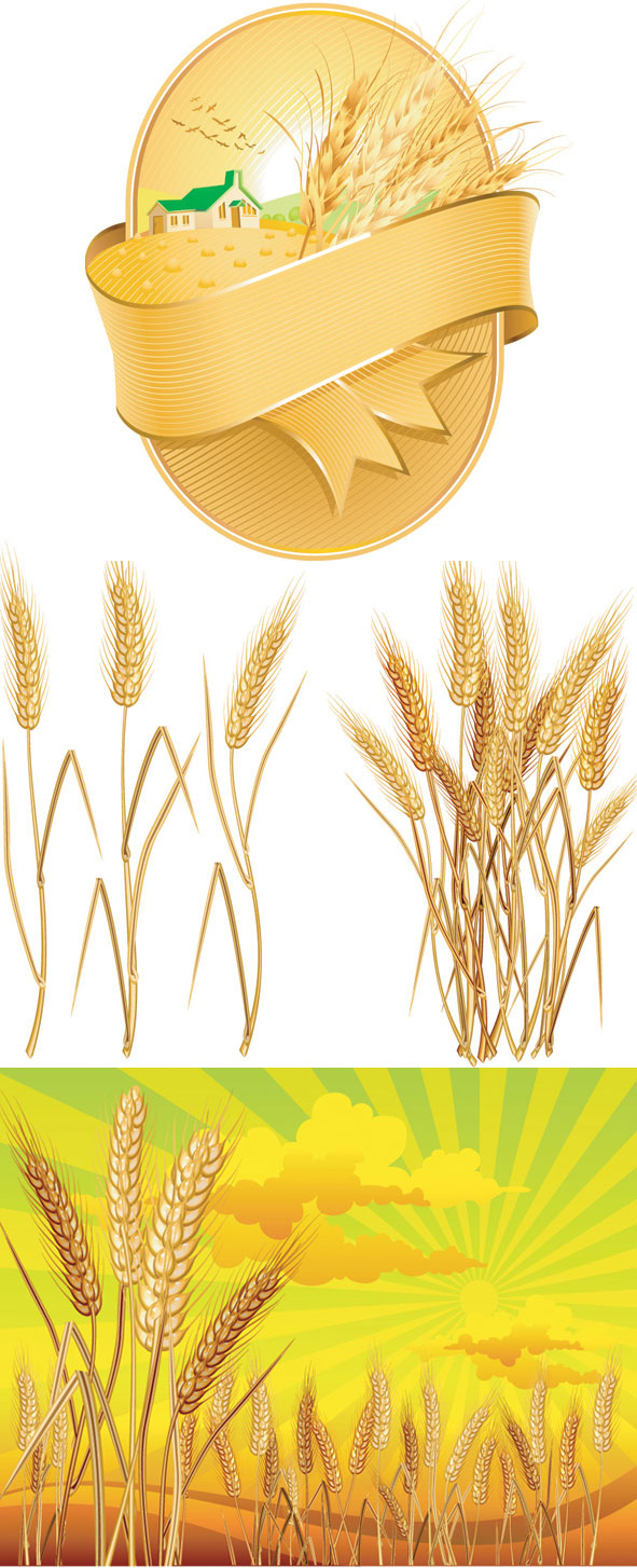 EPS格式,含JPG预览图,关键字:矢量植物,小麦,金色,丰收,喜悦,秋天,矢量图