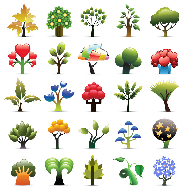 EPS格式,含JPG预览图,关键字:矢量植物,树木,抽象,可爱,图标,心形,五角星,手掌形状,方块,绿色,,矢量图