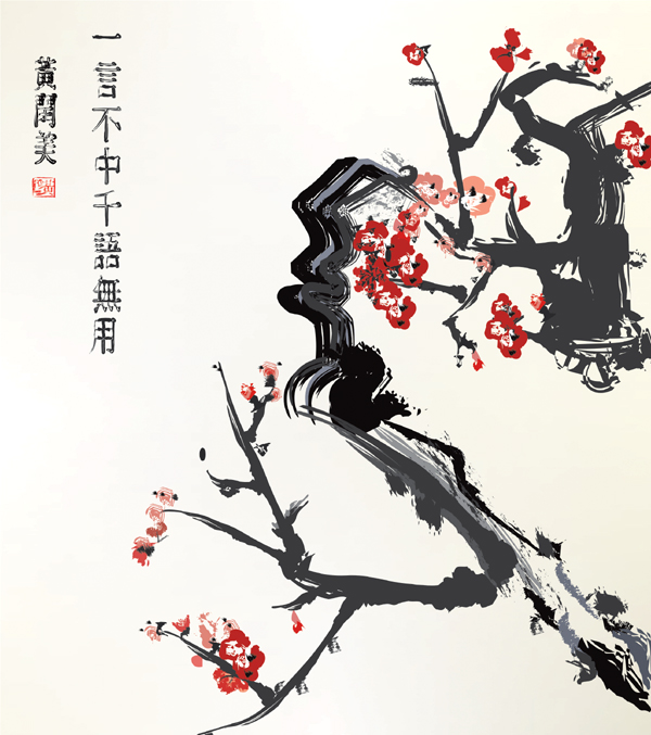 水墨梅树矢量素材
