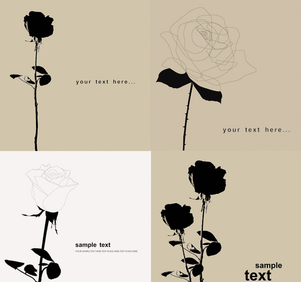 EPS格式,含JPG预览图,关键字:矢量花朵,玫瑰花,手绘,线描,黑白,剪影,时尚简约,矢量图