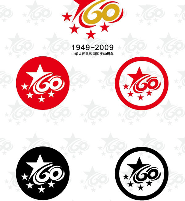 CDR格式,含JPG预览图,关键字:矢量标志,国庆60周年标志,五角星,数字,60,1949-2009,CDR格式,矢量素材。