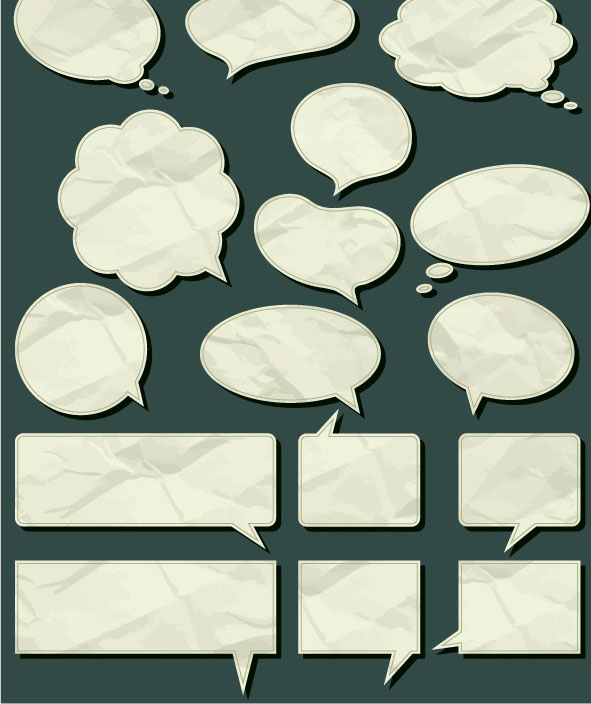EPS格式,含JPG预览图,关键字:矢量,对话框,对话泡泡,纸纹,褶皱,经典实用,矢量图