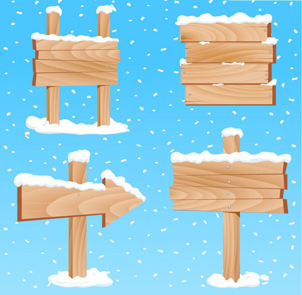EPS格式,含JPG预览图,关键字:矢量指示牌,木纹,指路牌,路标,积雪,下雪,雪天,矢量图