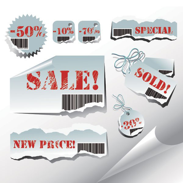 EPS格式,含JPG预览图,关键字:矢量标签,销售标签,撕裂,折扣,sale,折角,卷角,锯齿,吊牌,挂牌,商场,购物,矢量图