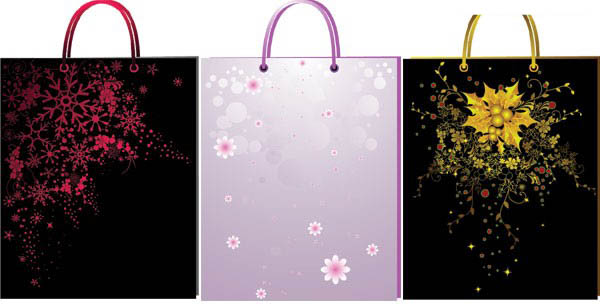 EPS格式,含JPG预览图,关键字:矢量袋子,手提袋,购物袋,手挽袋,花纹,雪花,花朵,矢量图