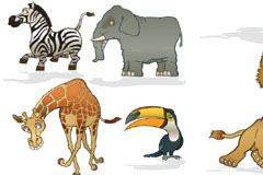 EPS格式,含JPG预览图,关键字:矢量动物,卡通,狮子,大象,斑马,长颈鹿,大猩猩,啄木鸟,矢量图