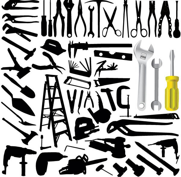 多款家庭常备工具剪影矢量素材由软件自学网免费提供下载。