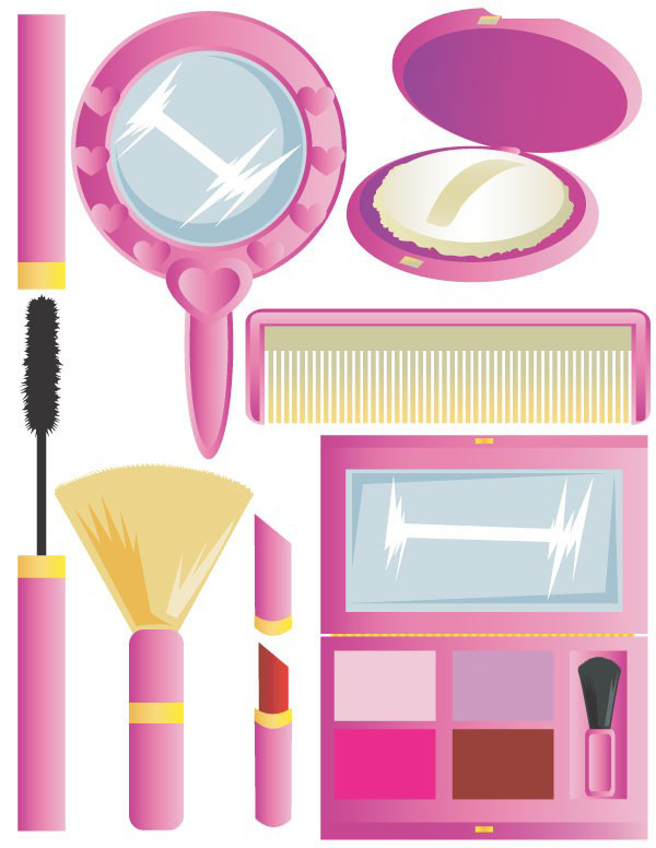 粉红色系列女性化妆工具矢量图素材下载