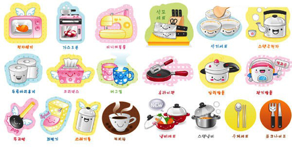 超可爱的笑脸家居用品矢量素材由软件自学网免费提供下载。